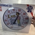 Pabst Blue Ribbon Metal Thermometer Wall Sign Retro Beer Bar Garage Man Cave