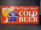 Vtg Pabst Blue Ribbon PBR Cold Beer What'll You Have? Tin Metal Sign 35" x 17"
